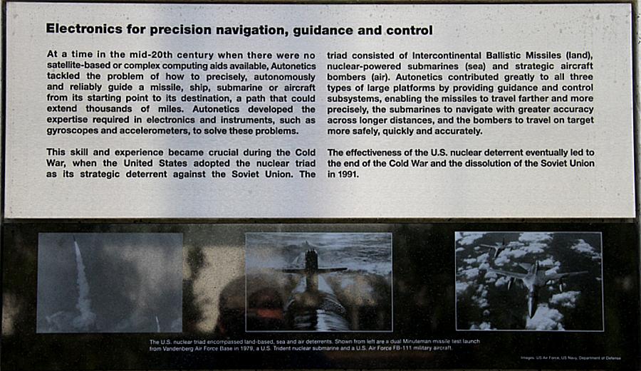BACK OF THE MONUMENT PRESENTING THE HISTORY AND ACCOMPLISHMENTS OF AUTONETICS