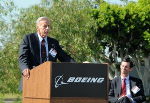 John A. McLuckey, former president of Boeing Space Systems and a senior executive of Boeing heritage company Rockwell International, is shown in 2010 at the Boeing dedication ceremony for Autonetics employees in Anaheim, Calif. At right is Rick Stephens, senior vice president of Human Resources and Administration.