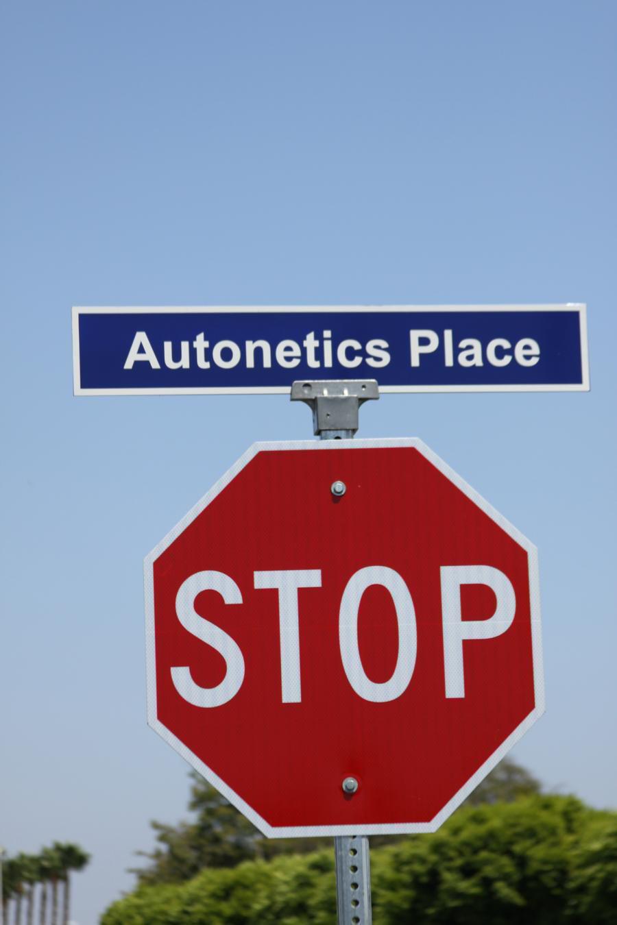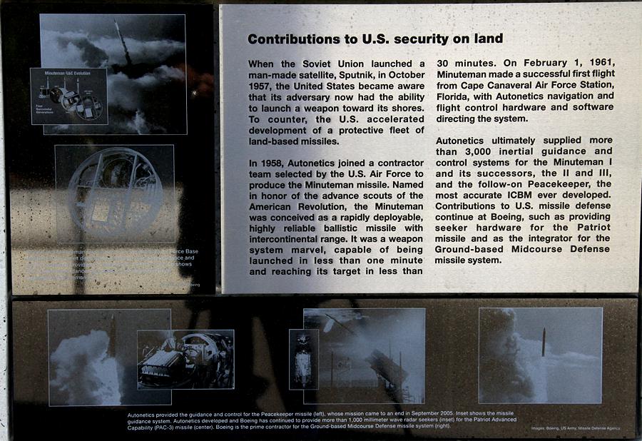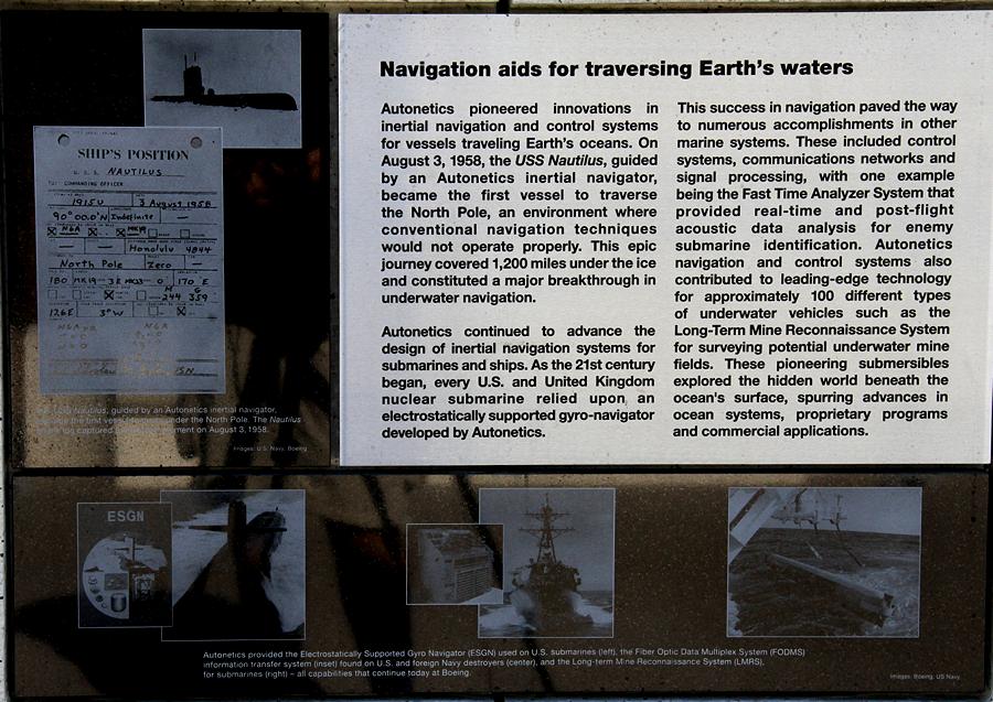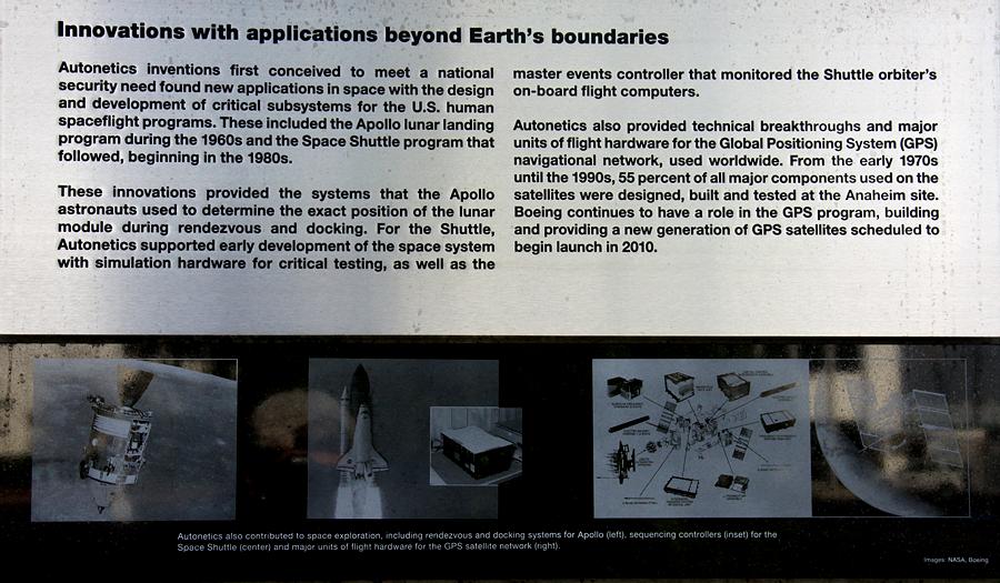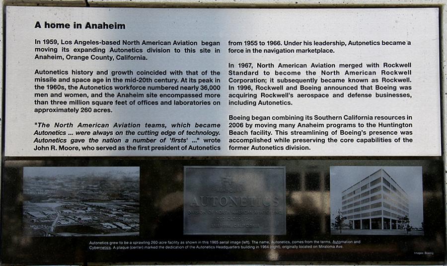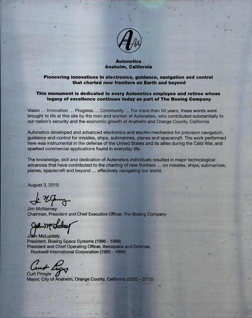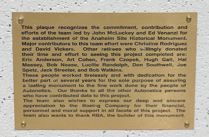 BACK OF THE MONUMENT PRESENTING THE HISTORY AND ACCOMPLISHMENTS OF AUTONETICS